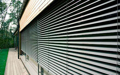 Venkovní žaluzie jsou nejpoužívanějším exteriérovým stínicím prvkem. Umožňují plynule regulovat přirozené osvětlení, zachycují přímé sluneční záření a chrání před jeho škodlivými účinky. V případě požadavku na maximální zatemnění použijeme lamelu typu Z-PROFIL, kde je tento efekt téměř dokonalý.